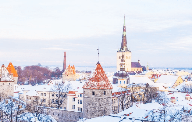 Vào mùa đông Tallinn như bước ra từ trong những câu chuyện thần thoại. Với hơn 20 tòa tháp cổ kính và những còn đường lát đá cuội ngoằn ngoèo như đưa người ta lạc vào thế giới cổ tích trắng xóa. Bên cạnh đó, từ giữa tháng 11 đến đầu tháng 1, du khách có thể khám phá khu chợ Giáng sinh tại quảng trường Town Hall Square.