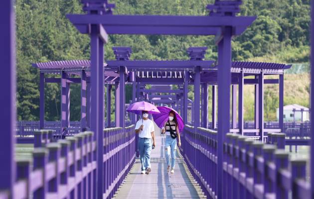 Toàn bộ nhà cửa, mái hiên, xe đạp, ghế nghỉ chân, cầu nối đều được sơn tím. Đặc biệt, cầu treo tím dài gần 1.5 km nối Banwol và Bakji trở thành điểm check-in nổi tiếng, được du khách mê mẩn vì vừa đẹp vừa thơ mộng.